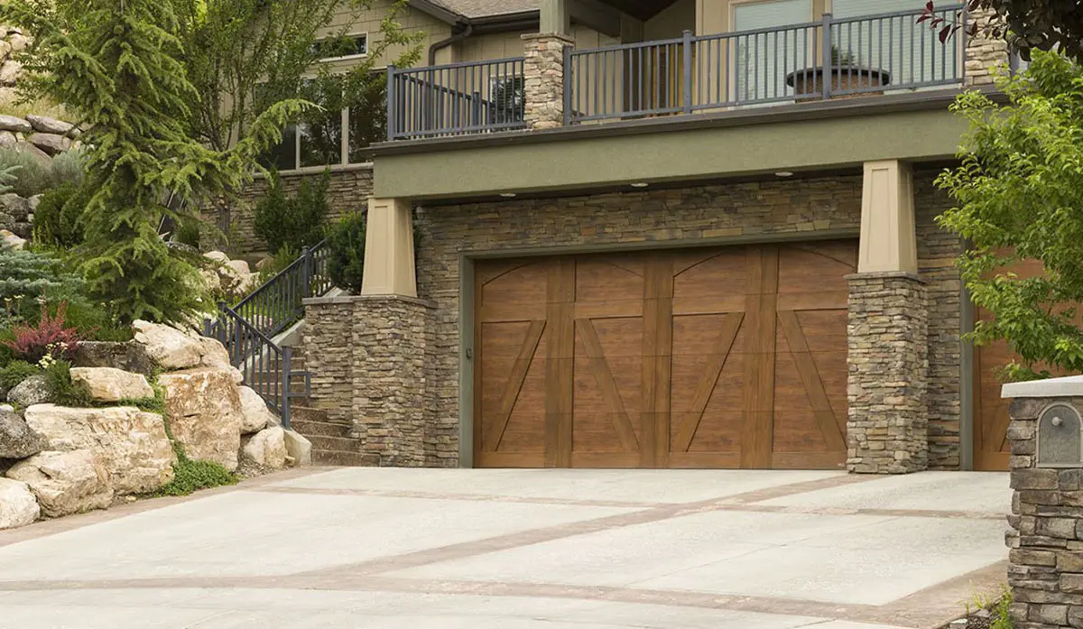 With our beautifully crafted rustic garage doors, you can find a design that creates the perfect finishing touch to your distinctive home style. Our rustic doors offer a striking accent that fits perfectly with homes made with natural materials like wood and stone. We offer two distinct rustic garage door styles you can customize to enhance your home. Depending on your preference, we offer doors made from real wood in the RESERVE WOOD collection and composite doors with a natural appearance in the CANYON RIDGE collection.